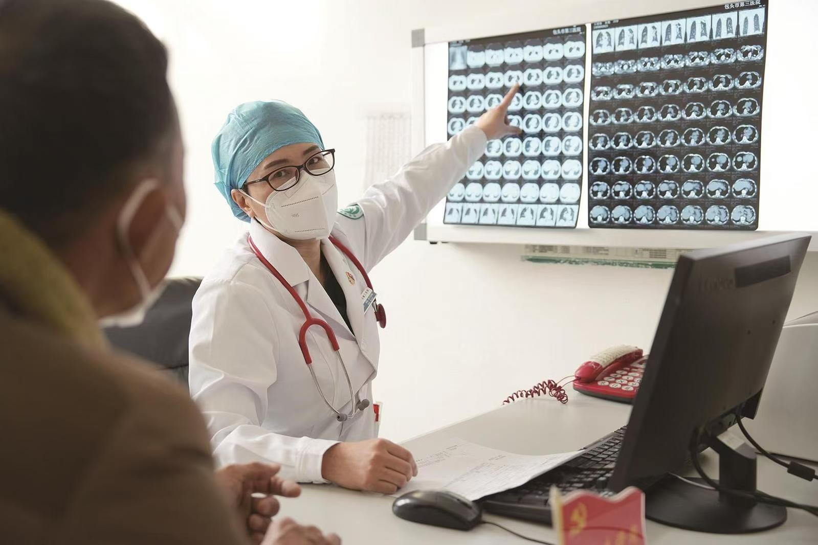 张海芹,包头市第三医院结核感染科主任、学科带头培养人,已经在临床一线奋战了18个春秋。从最初踏入医学院的大门,到如今成为科室的中坚力量,张海芹每一步都走得坚定而有力。谈及选择医疗专业的契机,她回忆起童年时期的往事:“小时候,我隔壁的邻居大伯开了一间卫生所,放学后我经常站在诊室门口,好奇地看着他忙碌的身影。大伯个子不高,但他身上却散发出一种让我感到很强大的力量。他治病救人,让我觉得非常了不起。从那时起,他就成为了我的榜样,我也立志要成为一名医生,去帮助更多的人。”