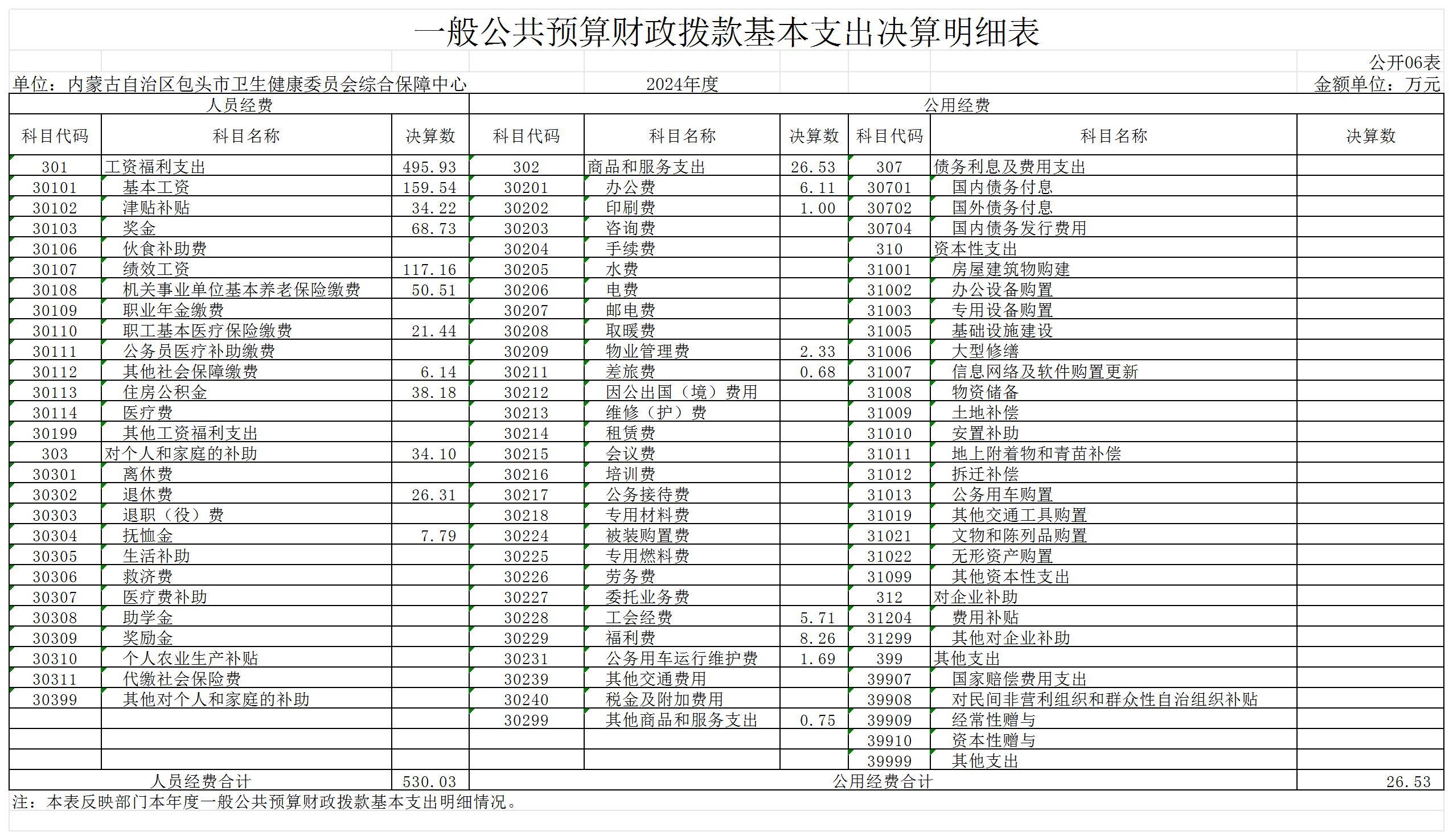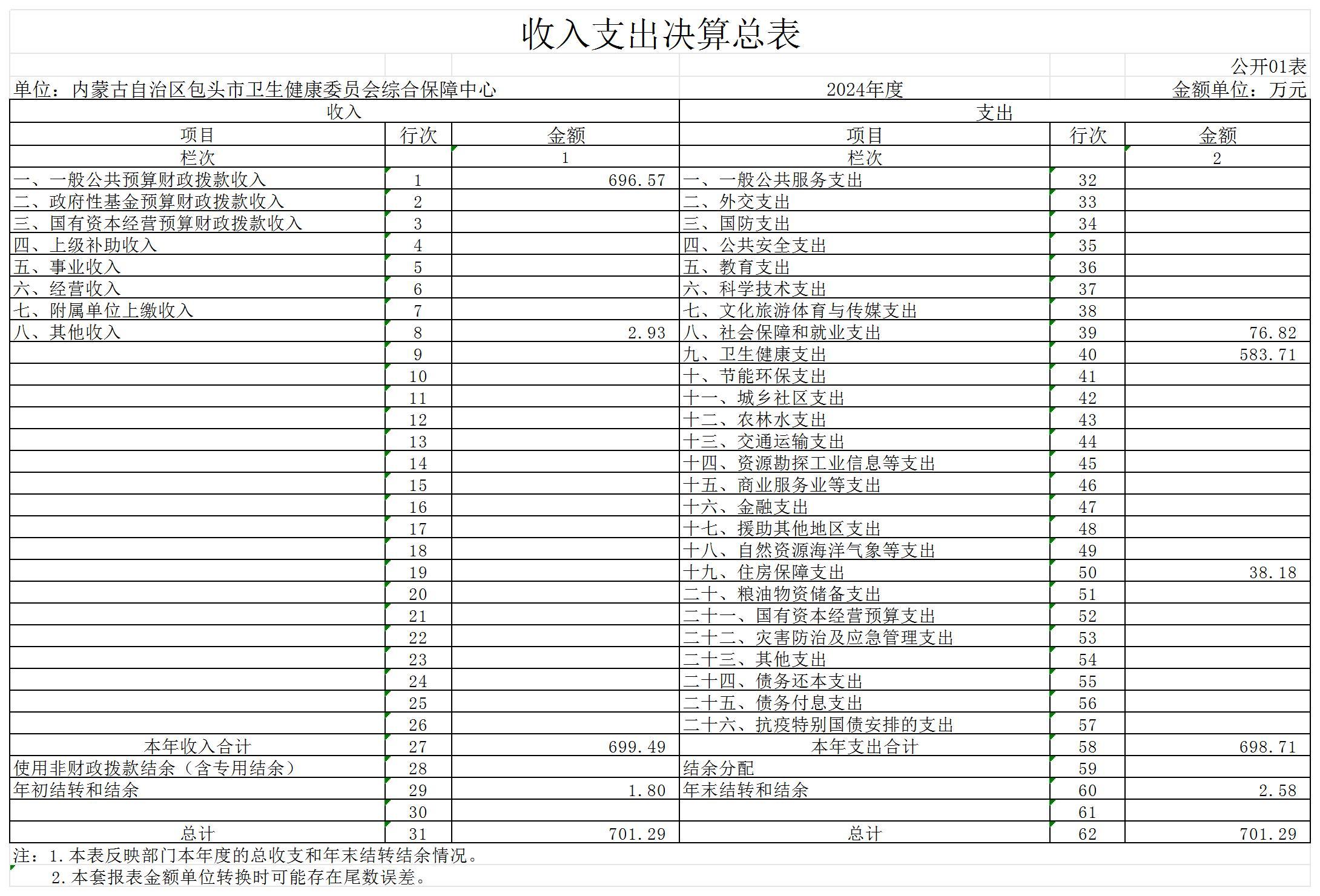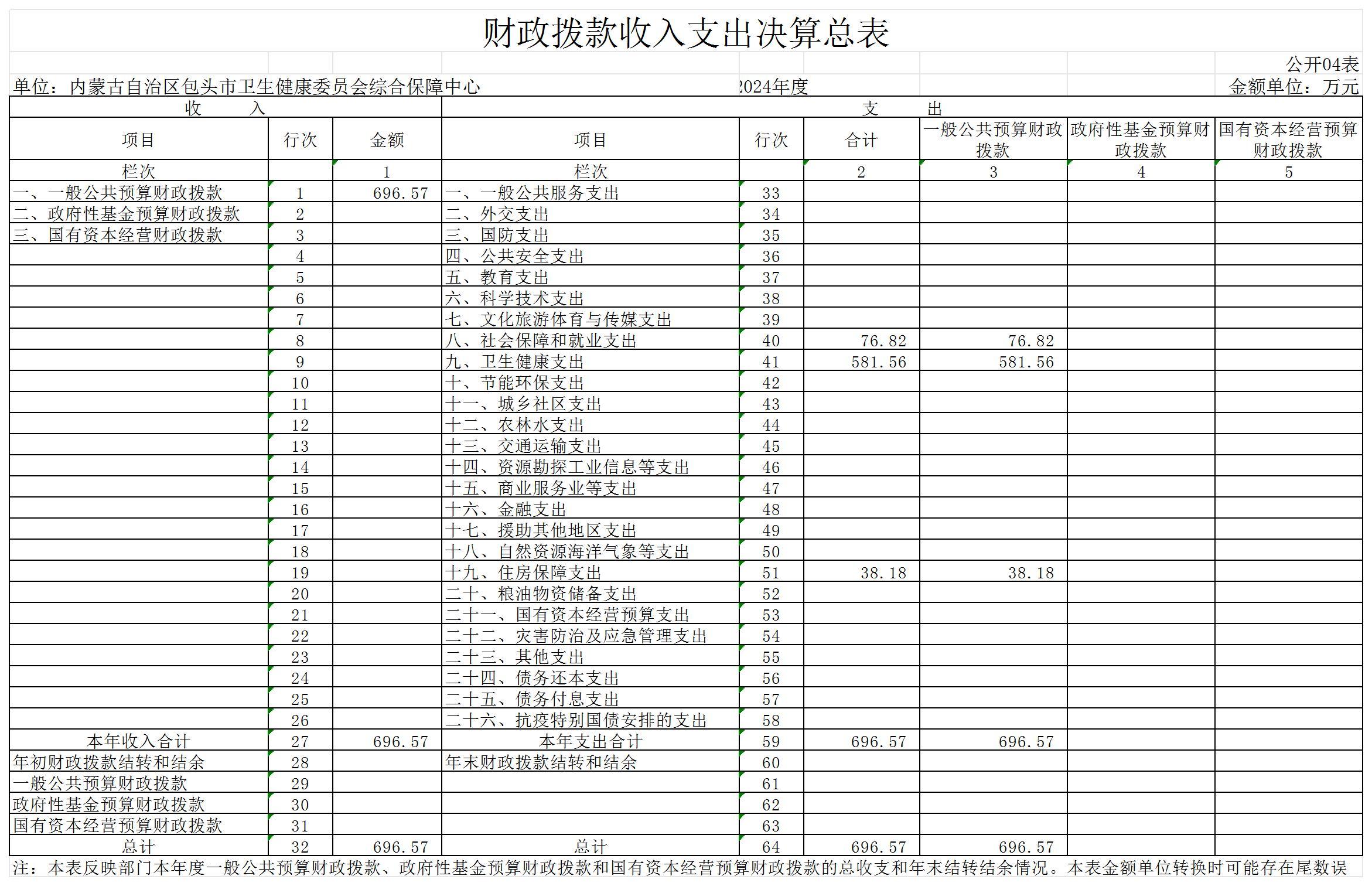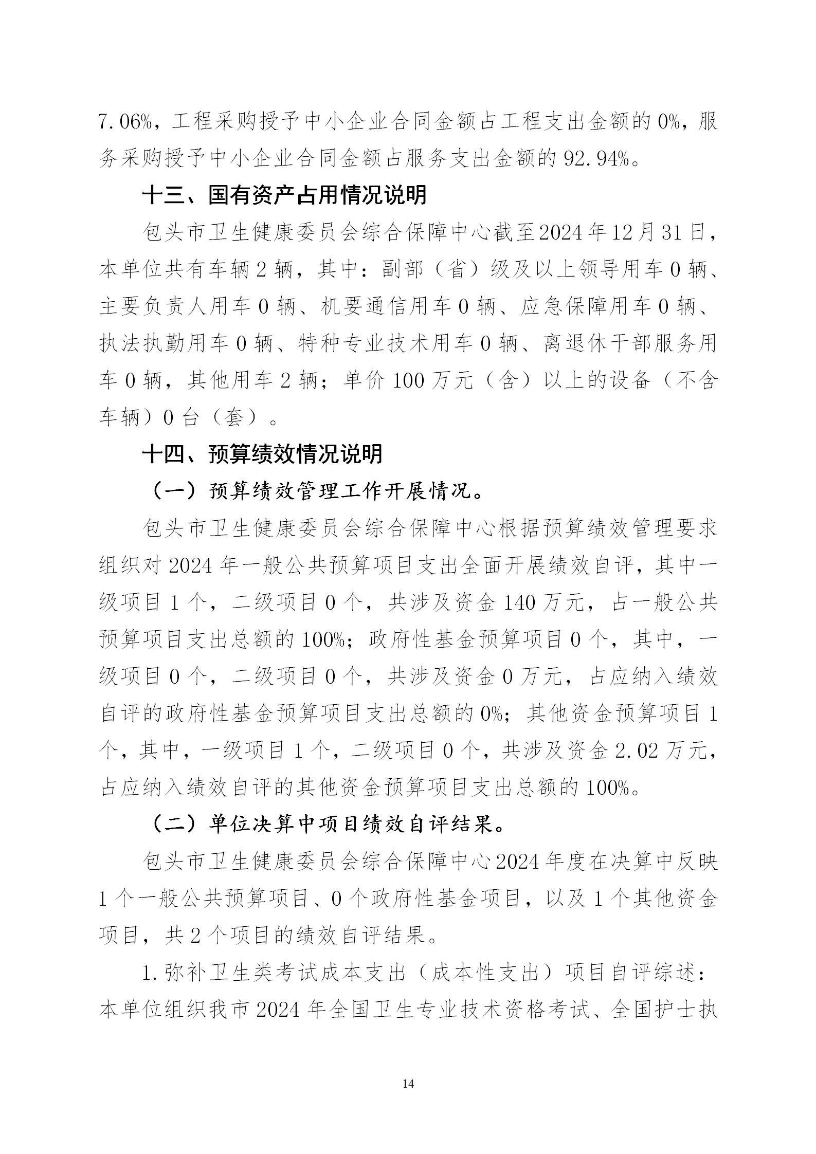2024年度包头市卫生健康委员会综合保障中心决算公开