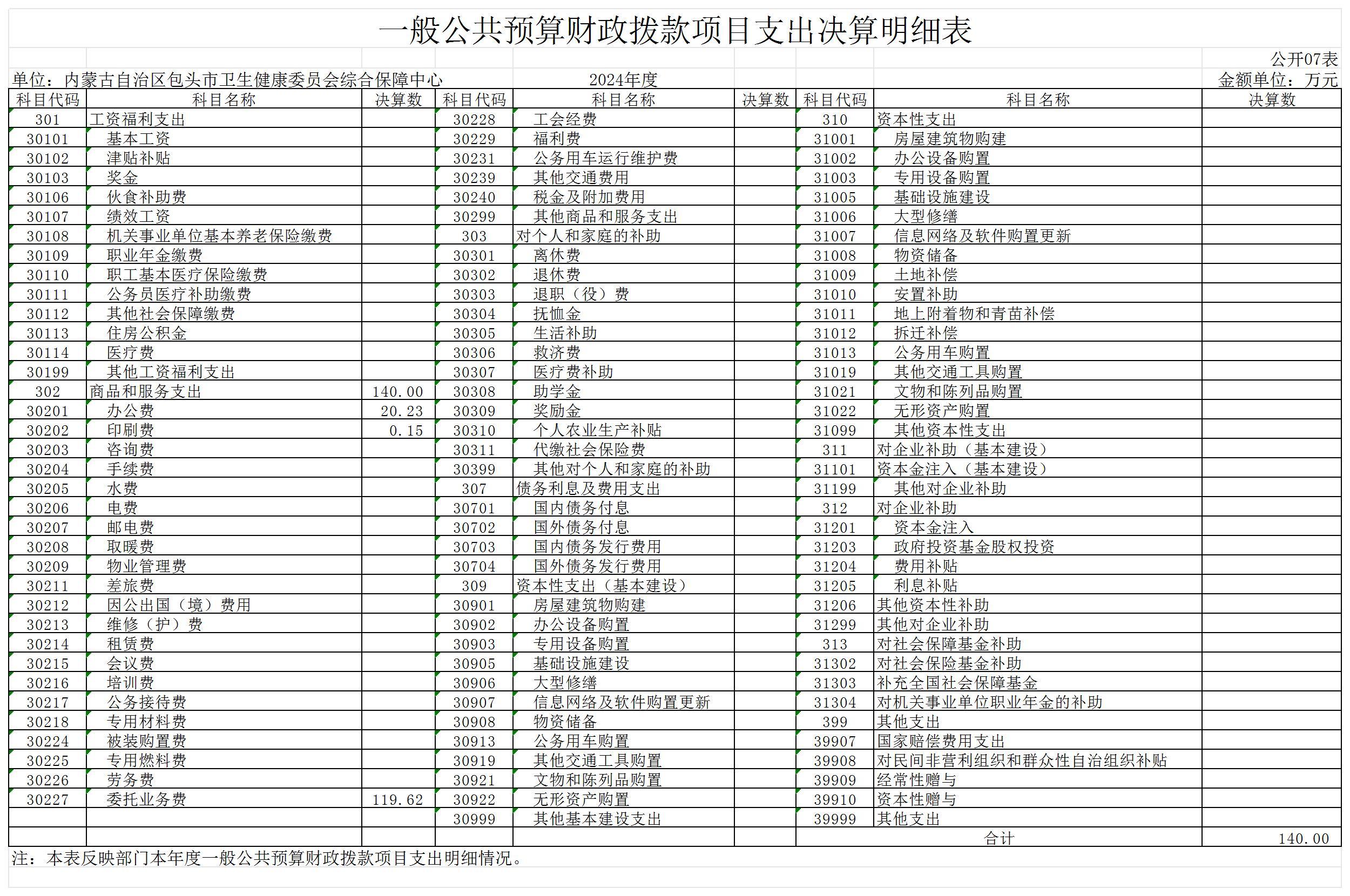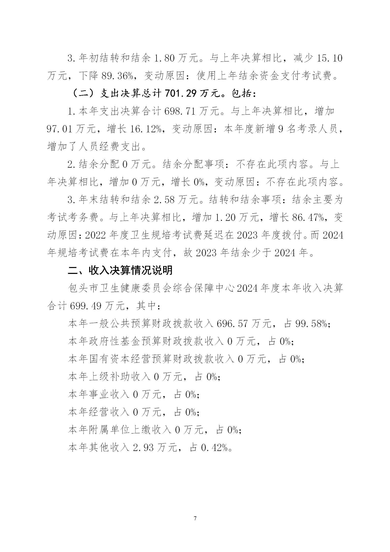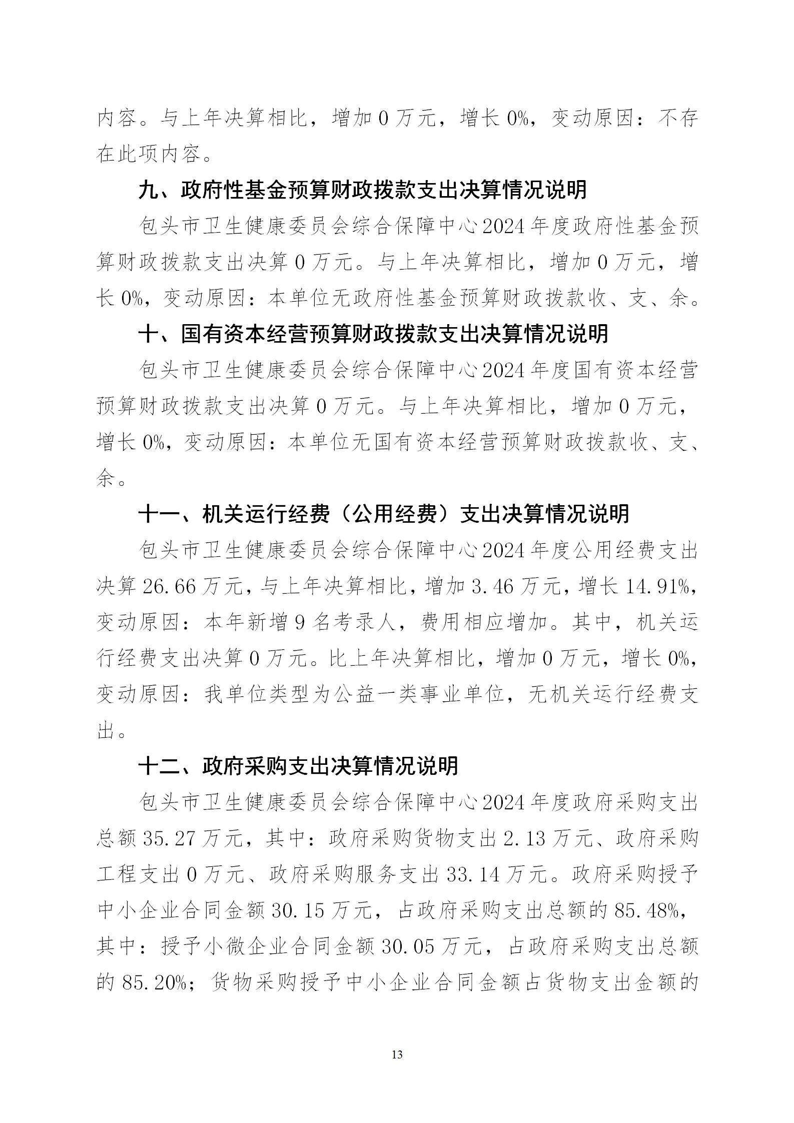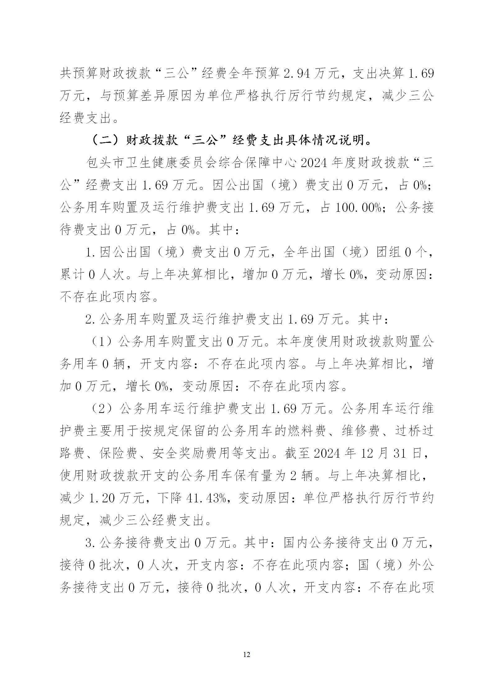 2024年度包头市卫生健康委员会综合保障中心决算公开