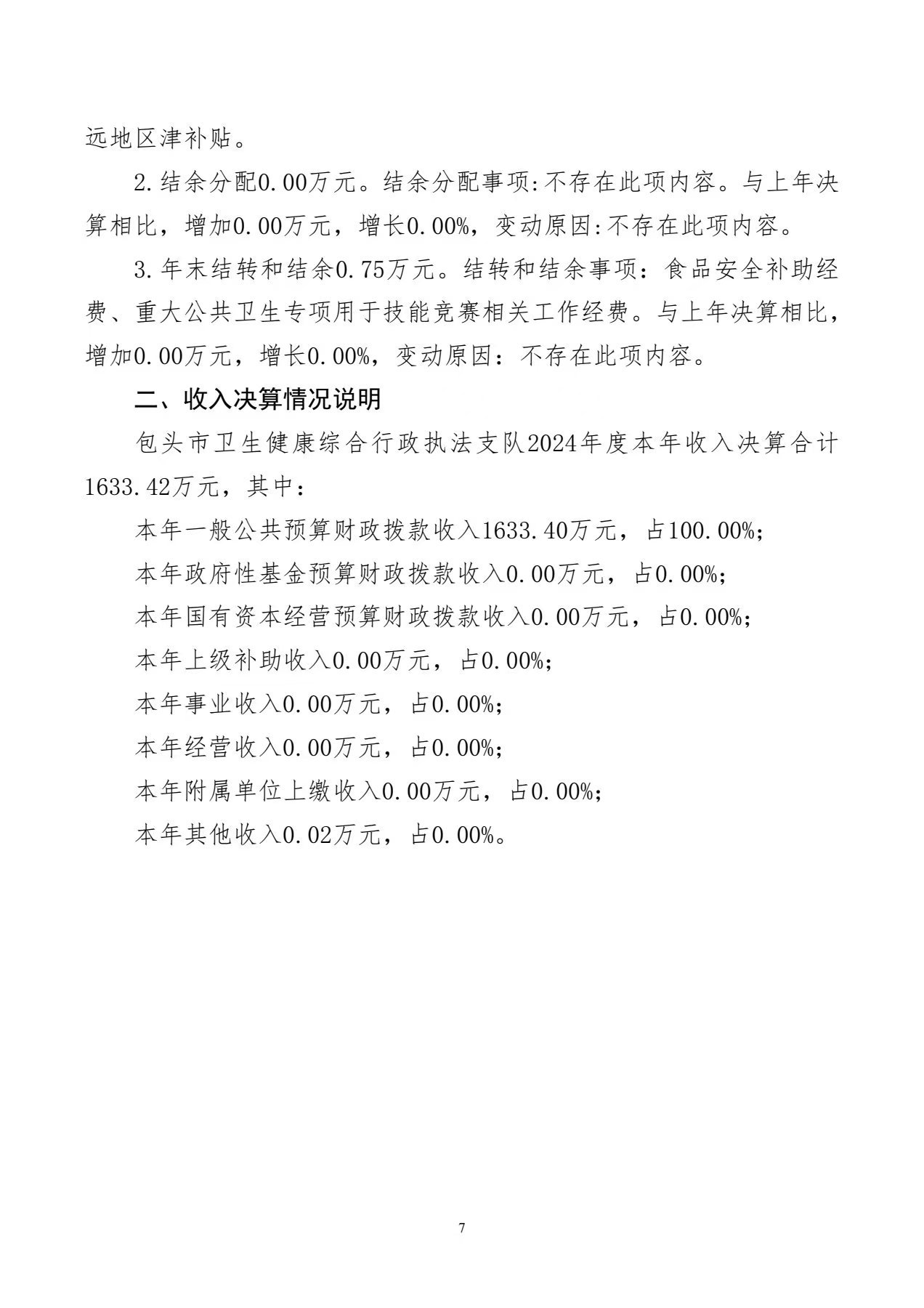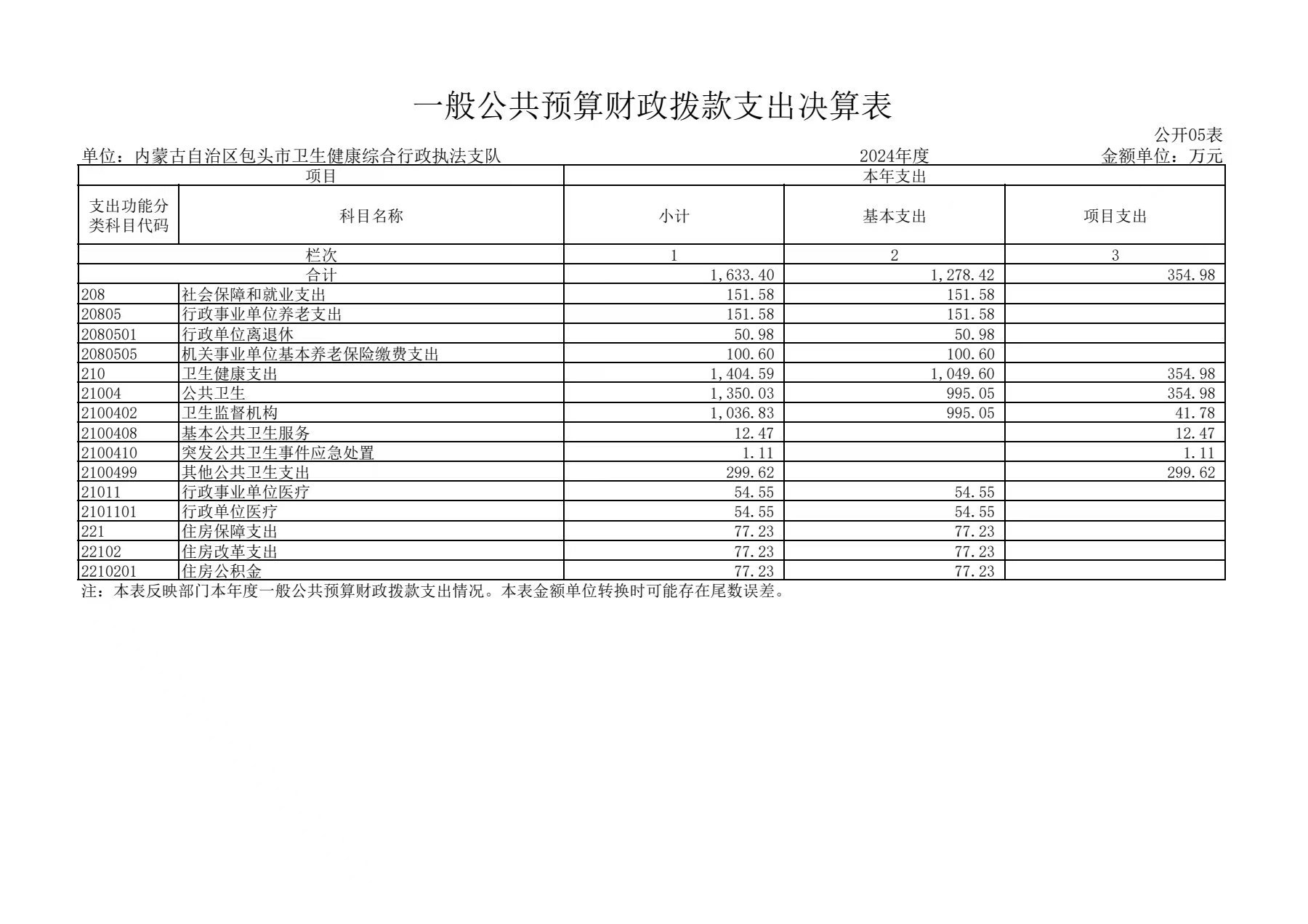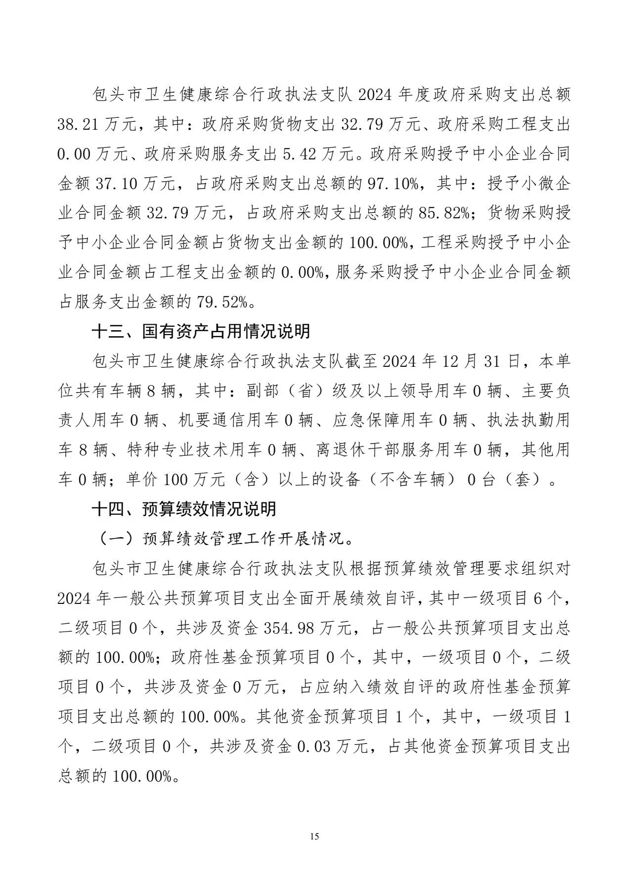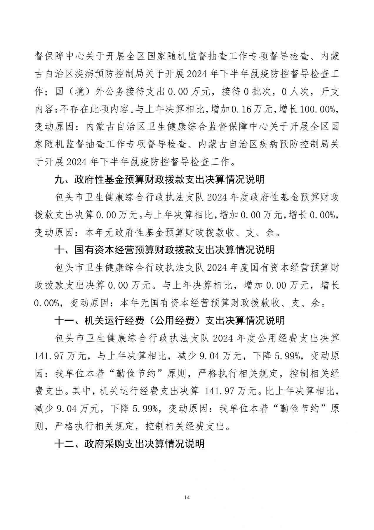 2024年度包头市卫生健康综合行政执法支队决算公开