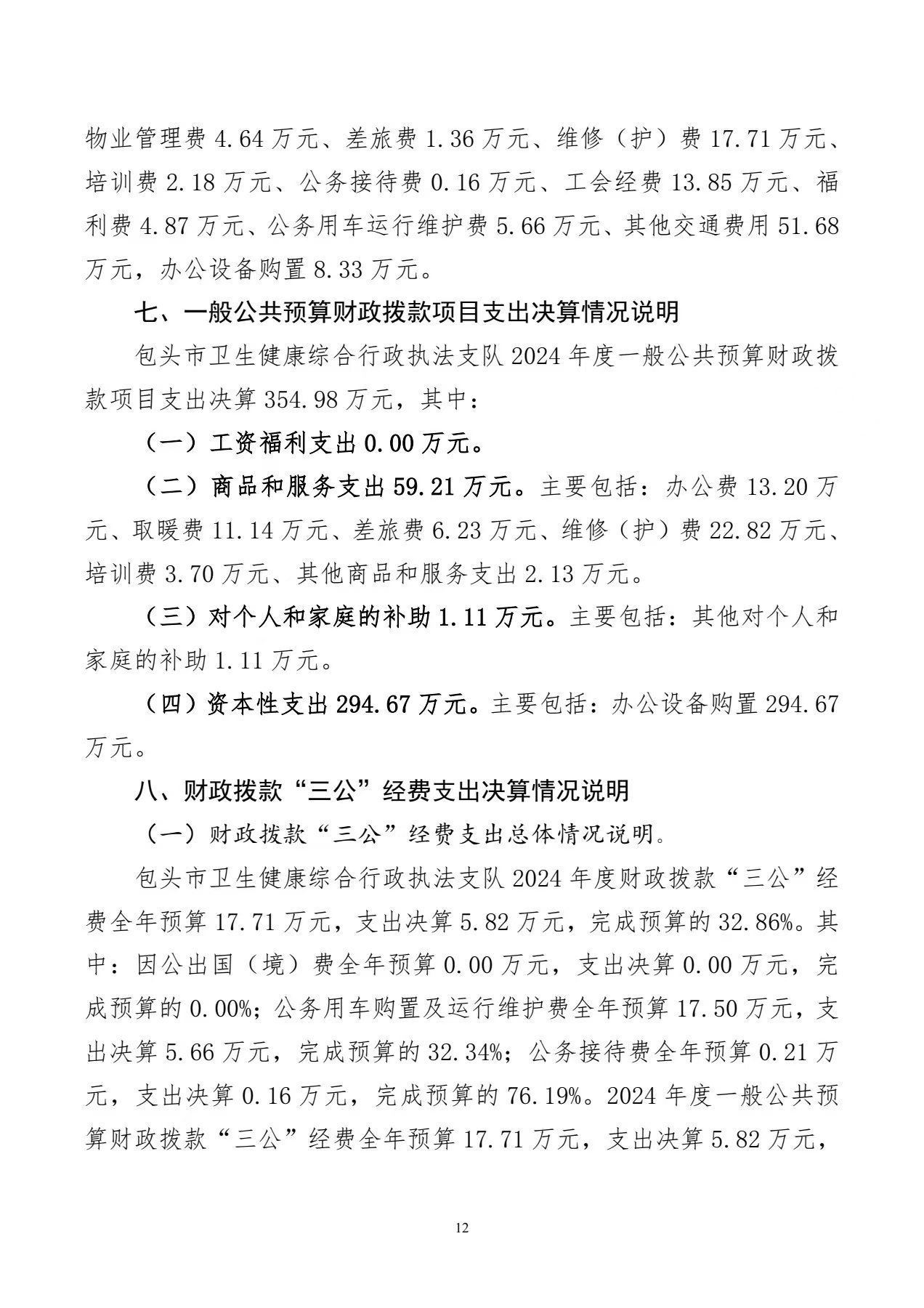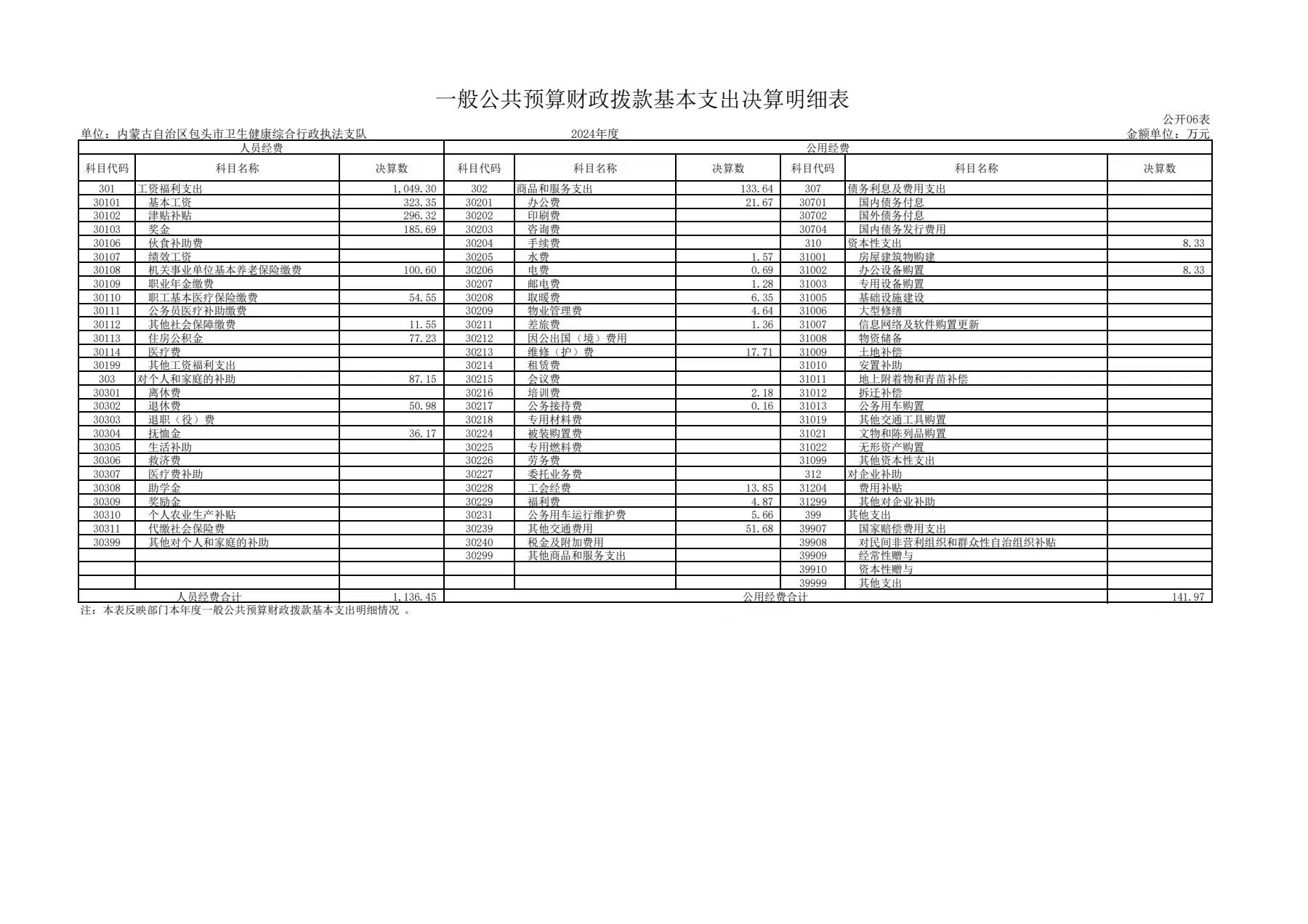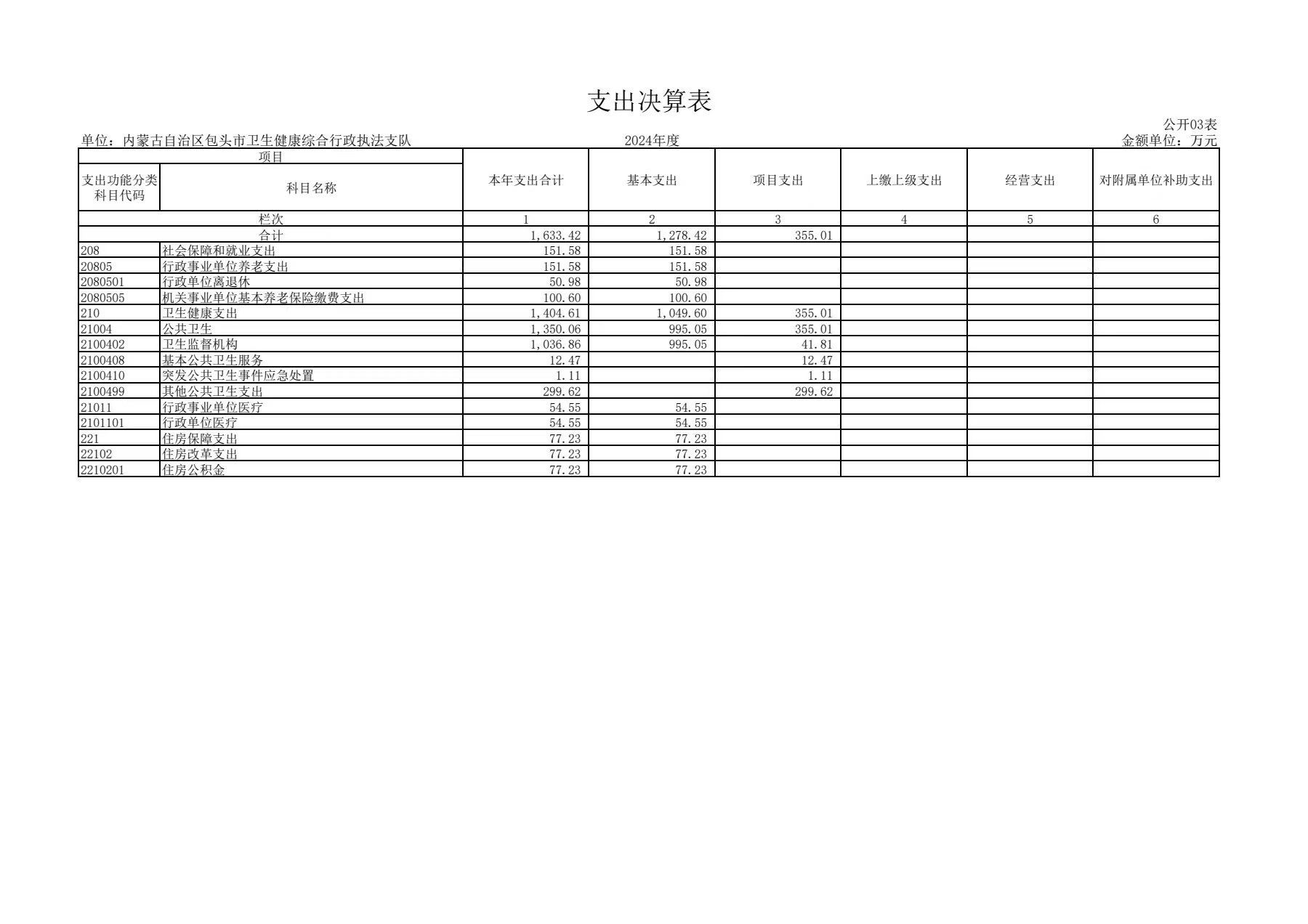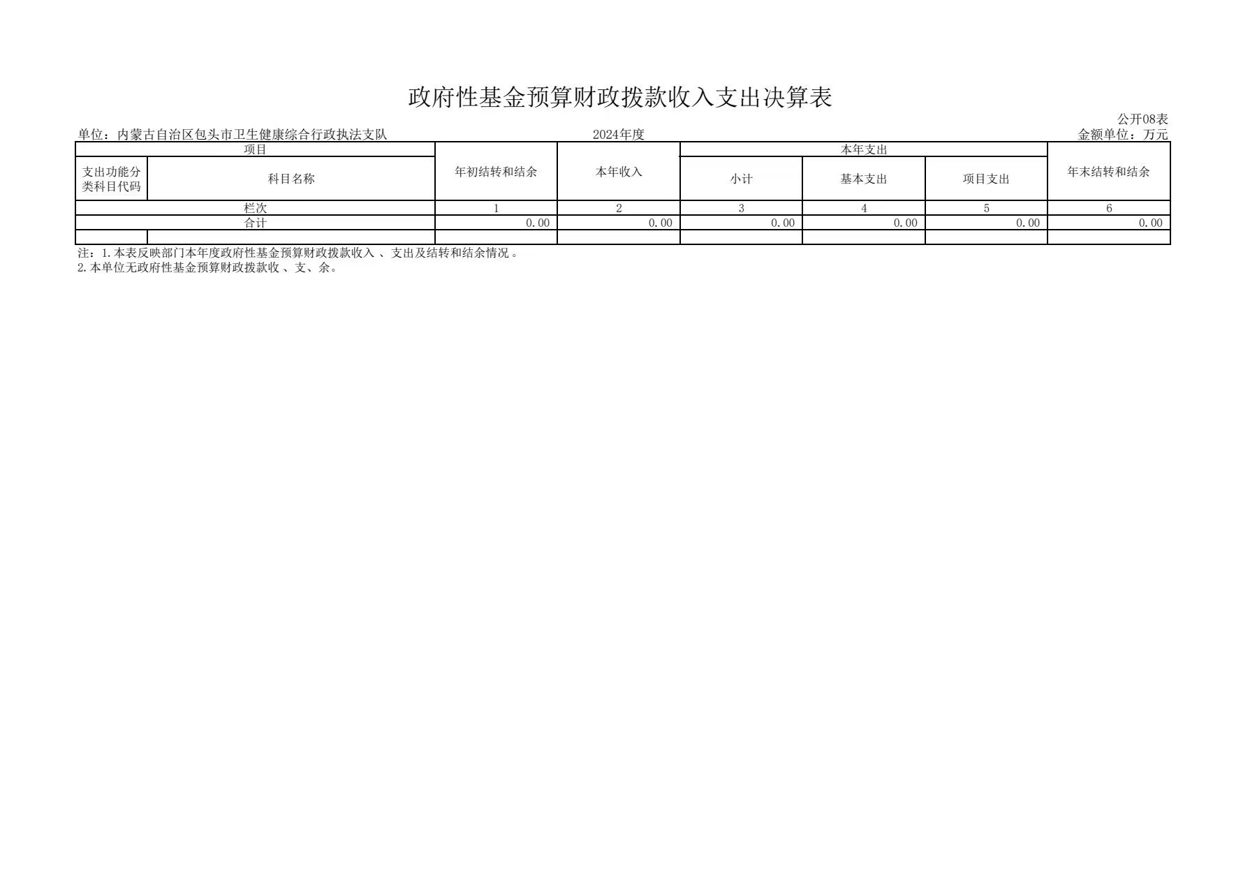 2024年度包头市卫生健康综合行政执法支队决算公开