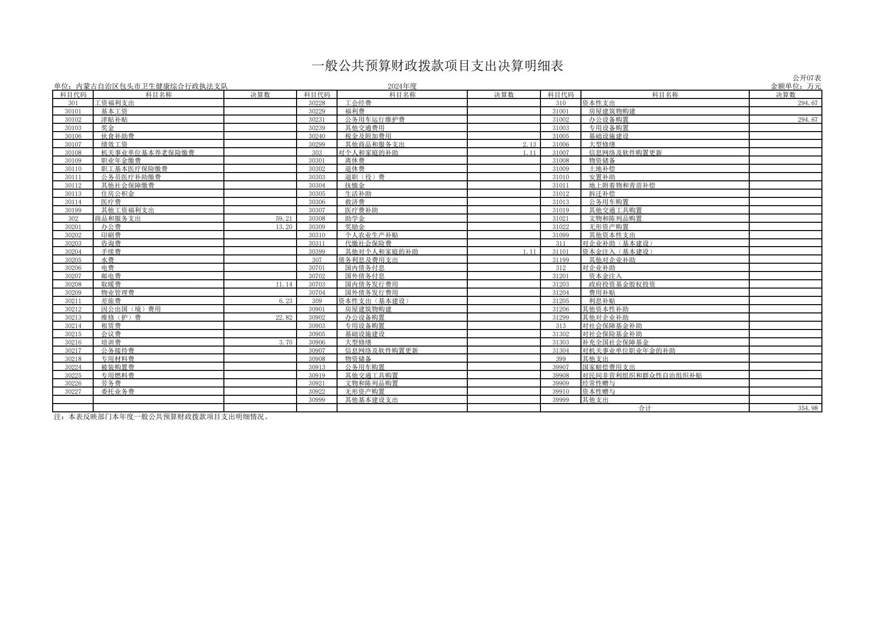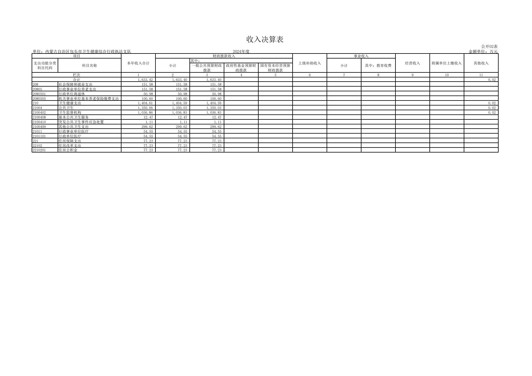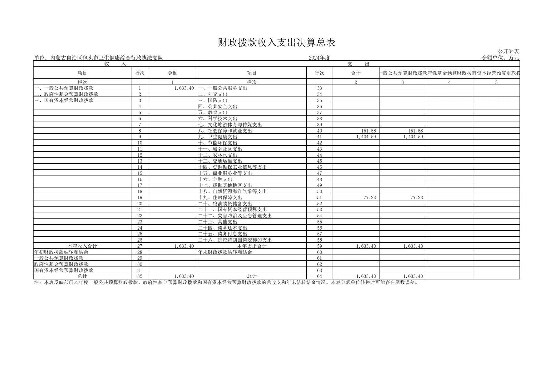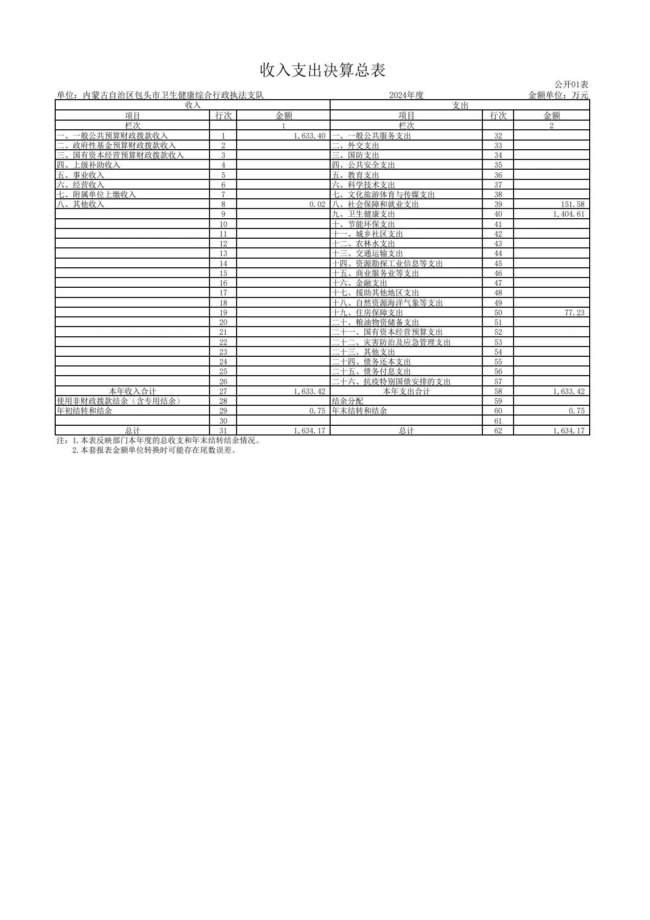 2024年度包头市卫生健康综合行政执法支队决算公开