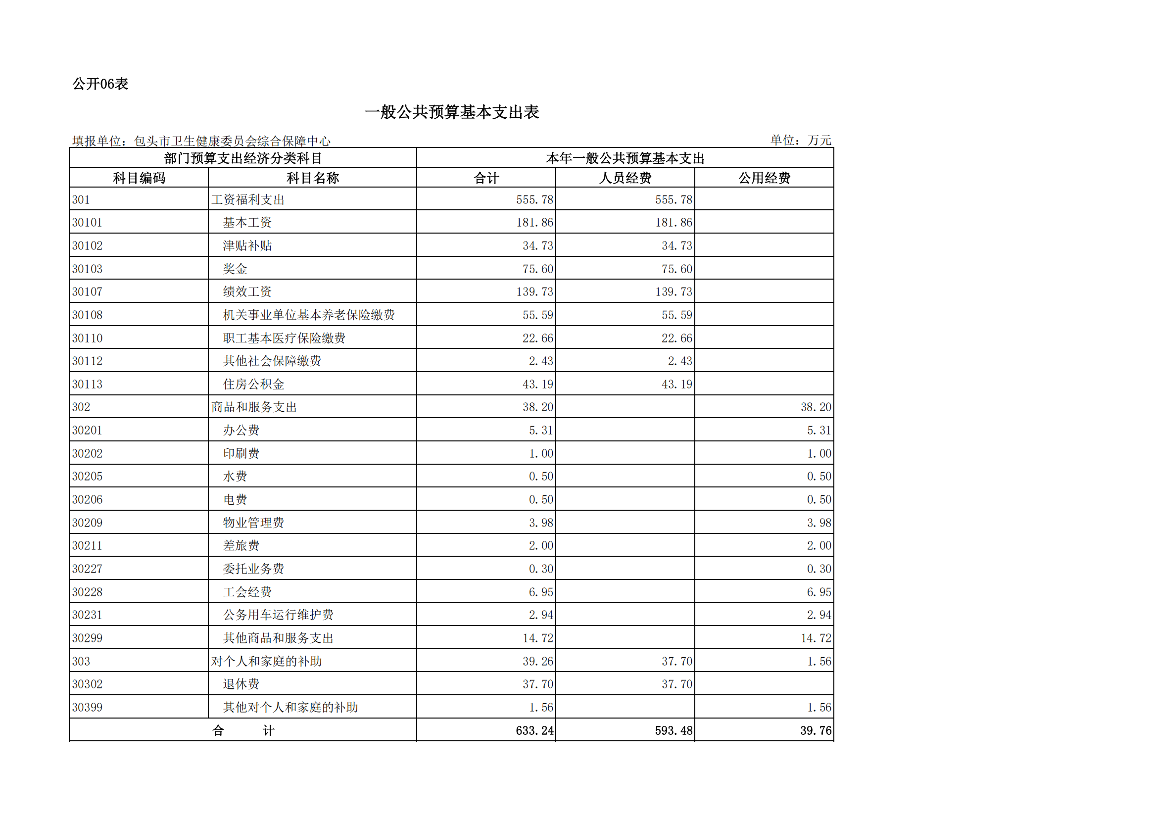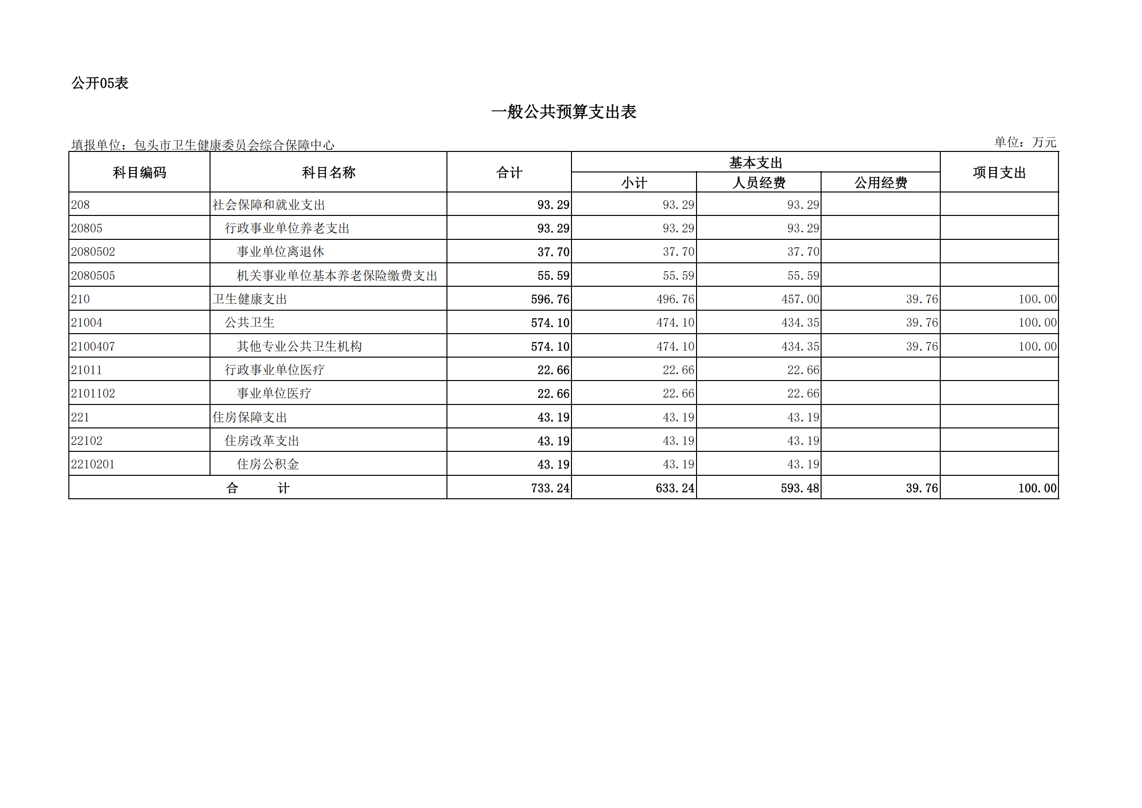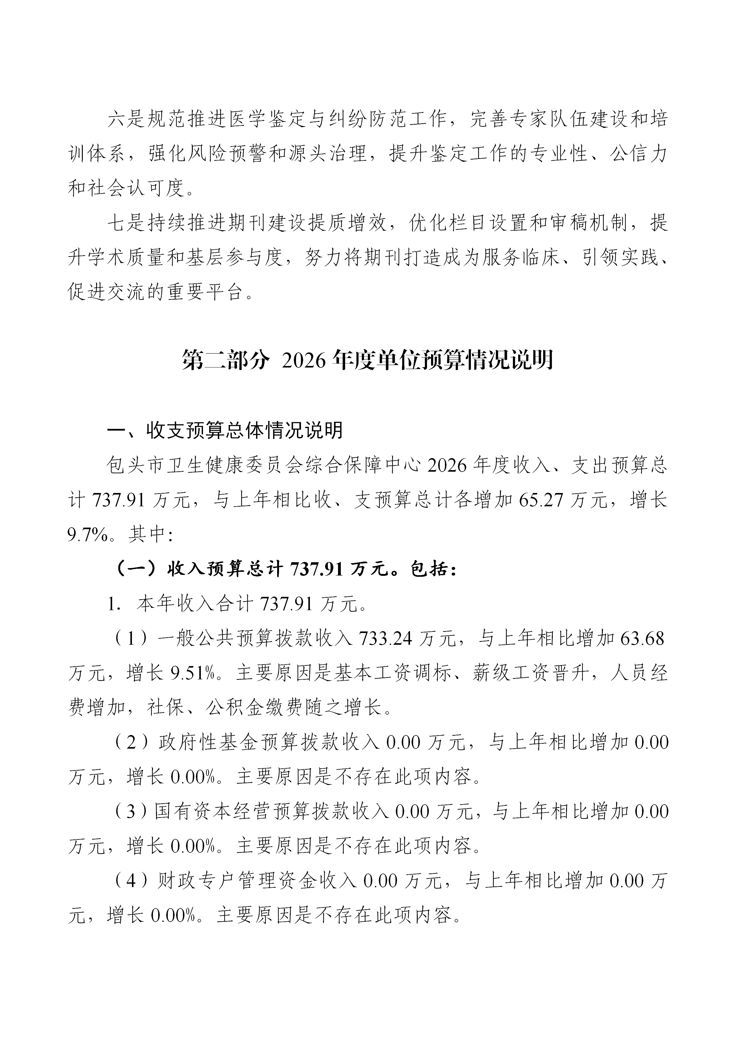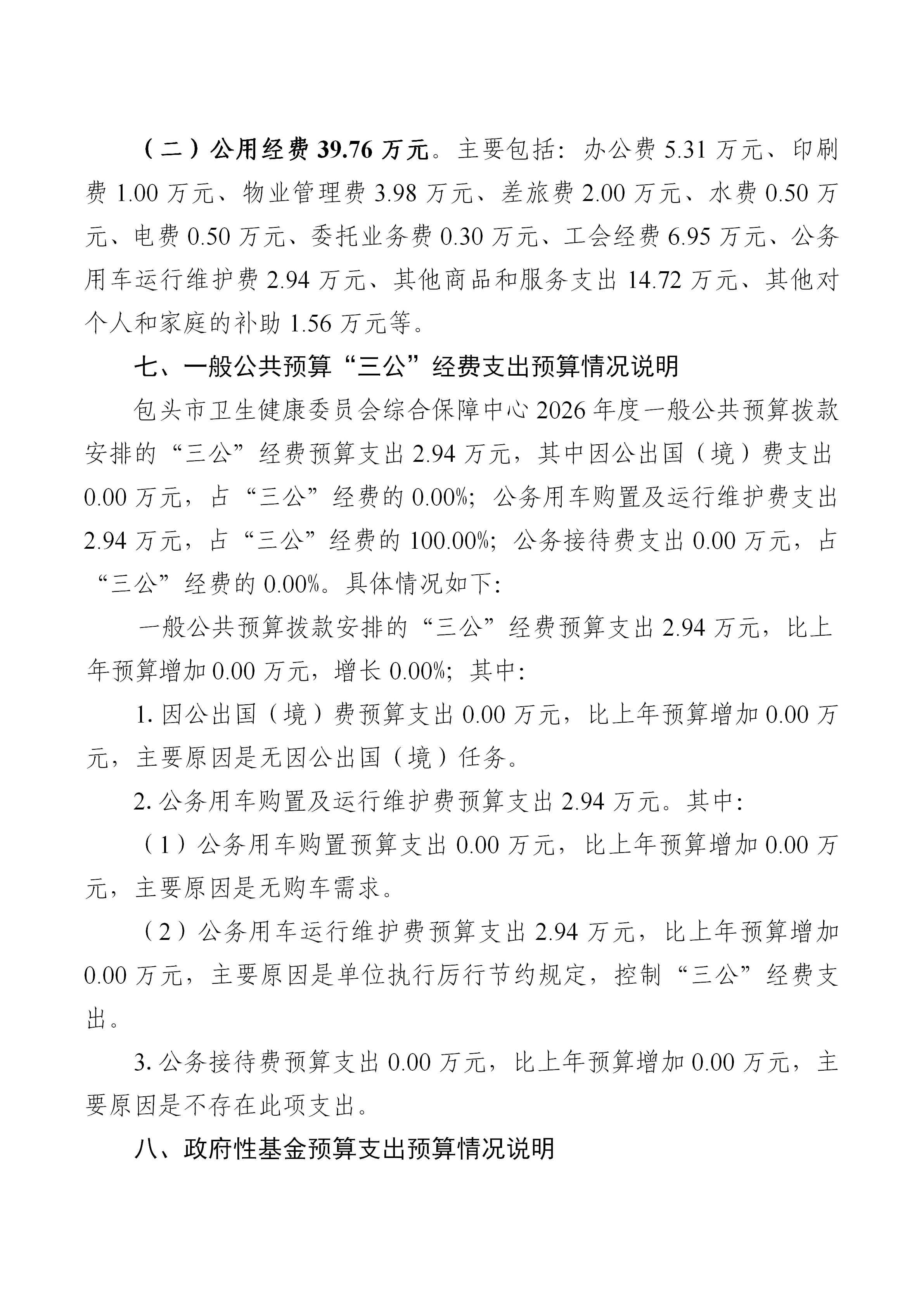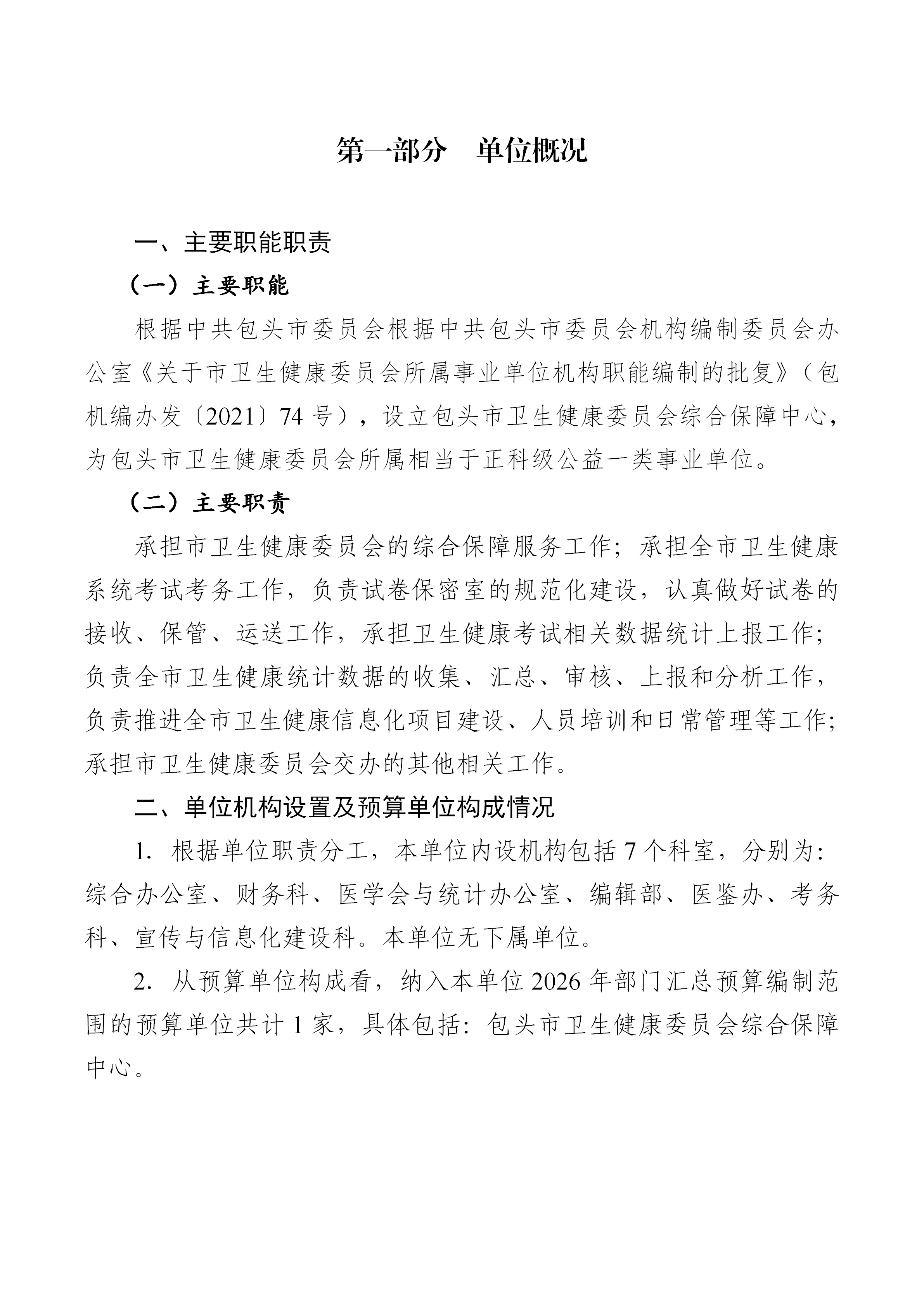 2026年度包头市卫生健康委员会综合保障中心预算公开
