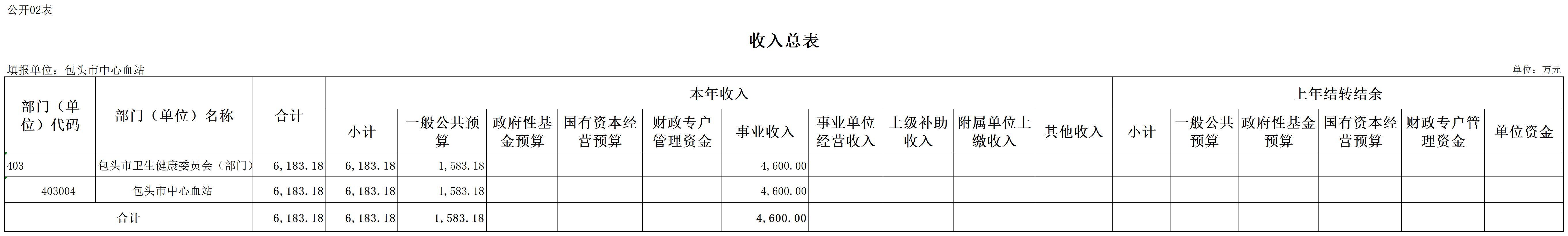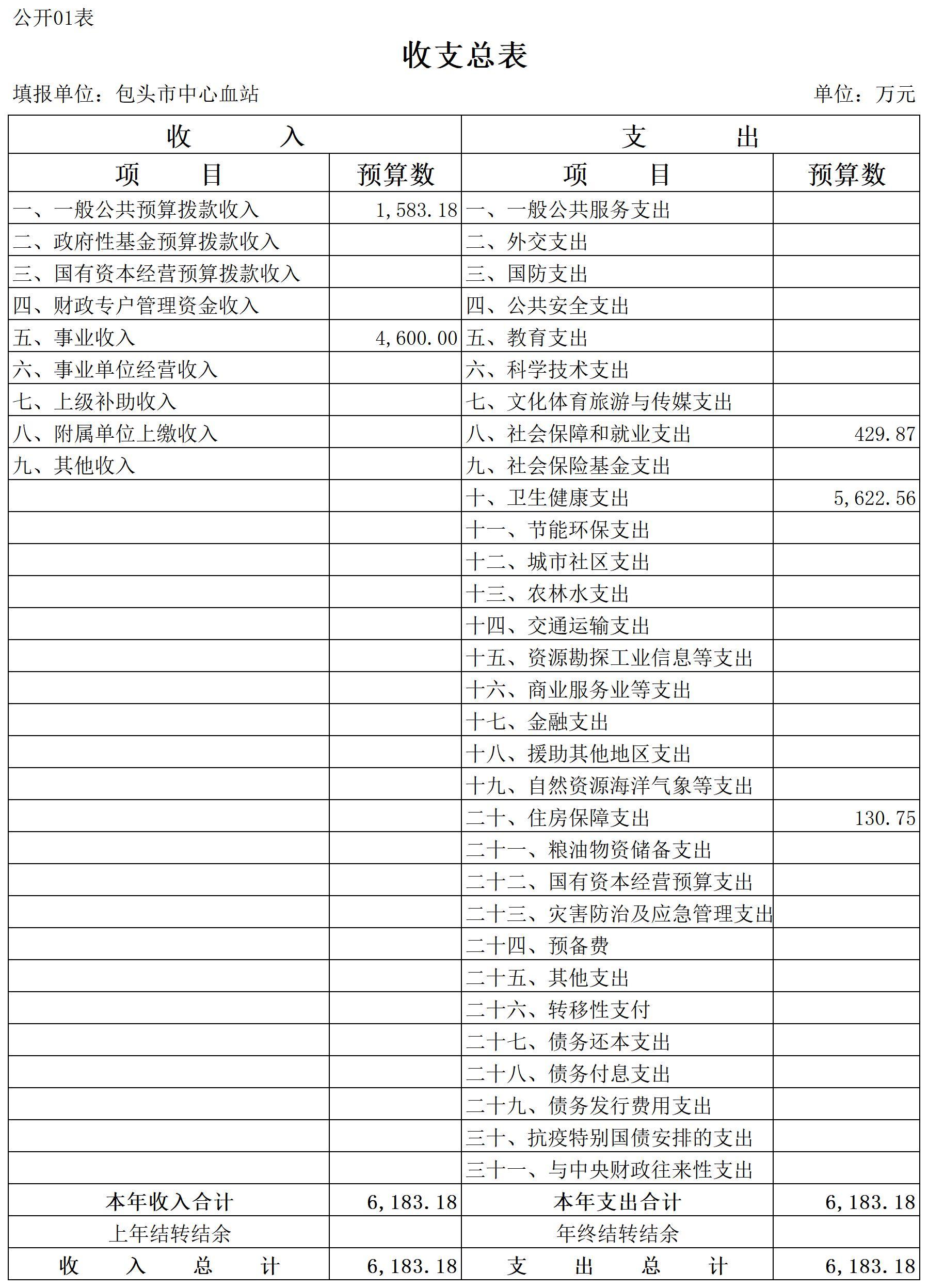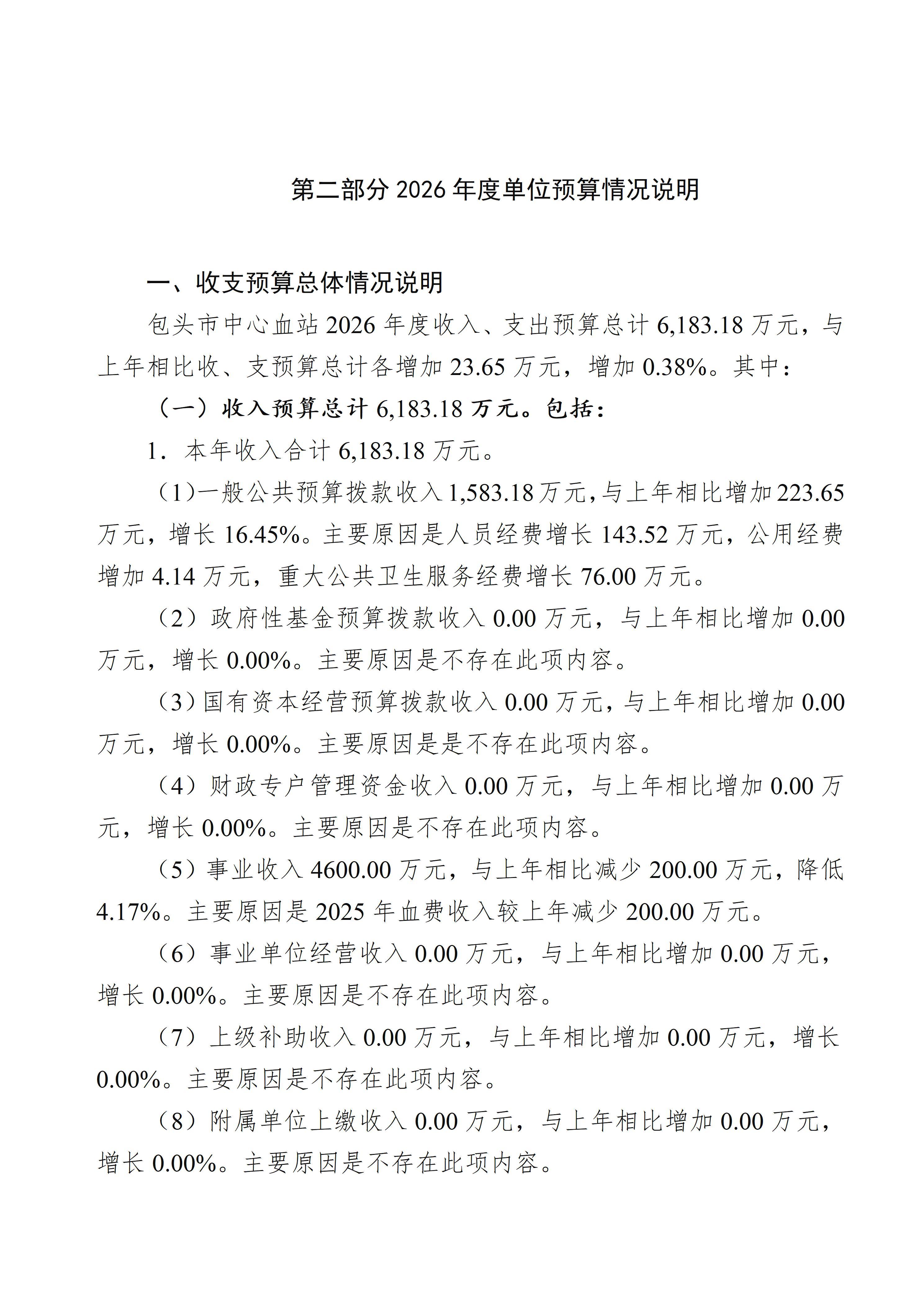 2026年度包头市中心血站预算公开