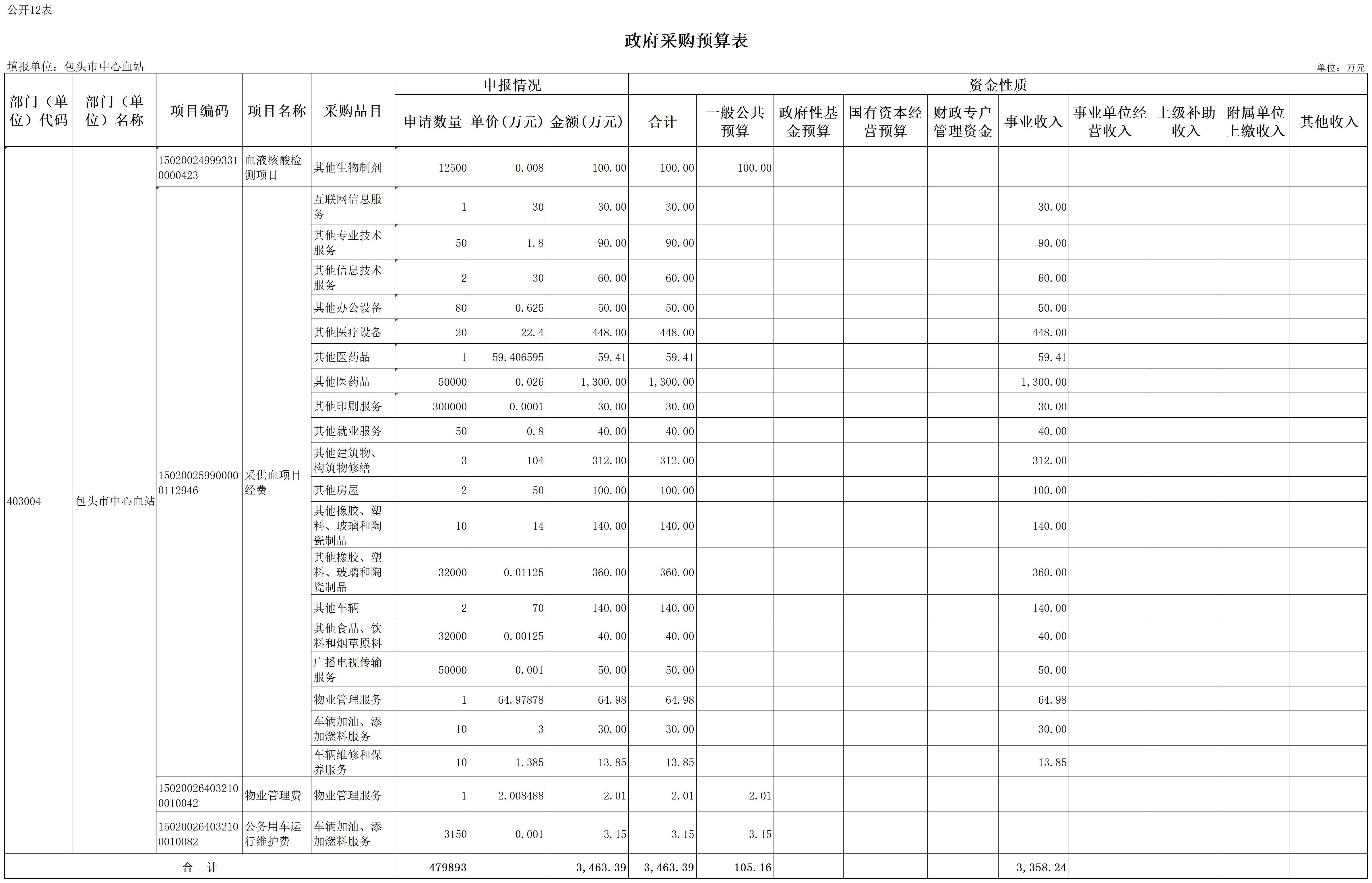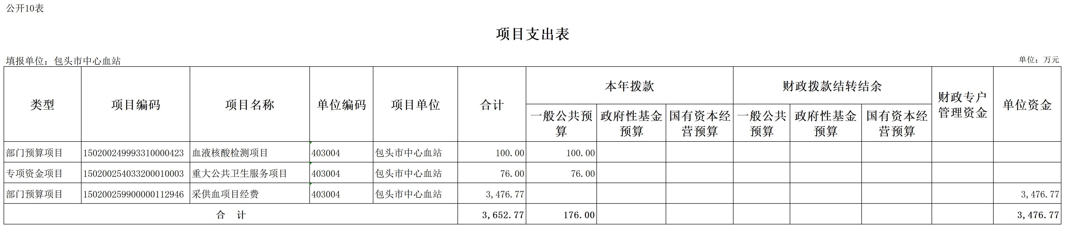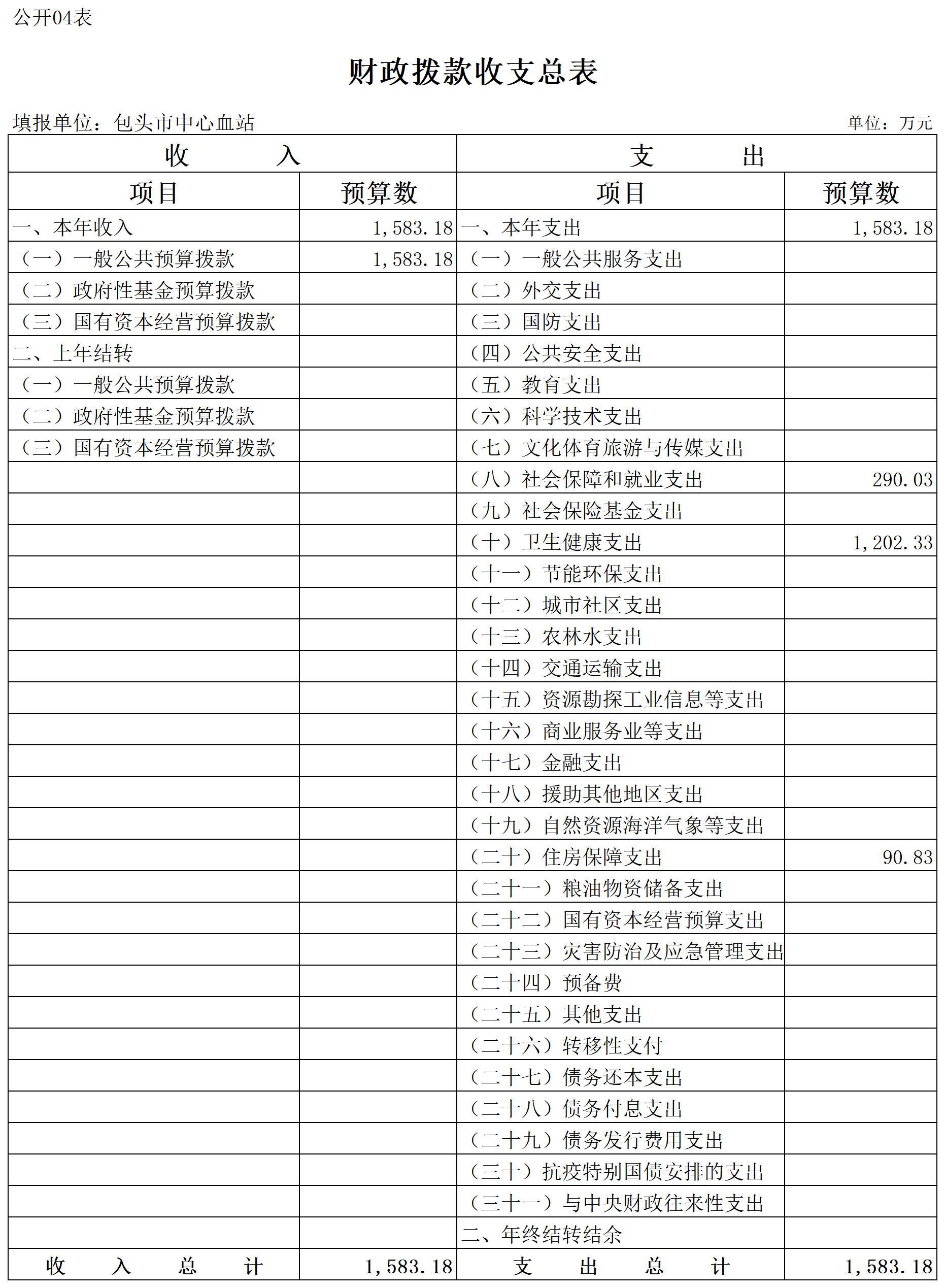 2026年度包头市中心血站预算公开