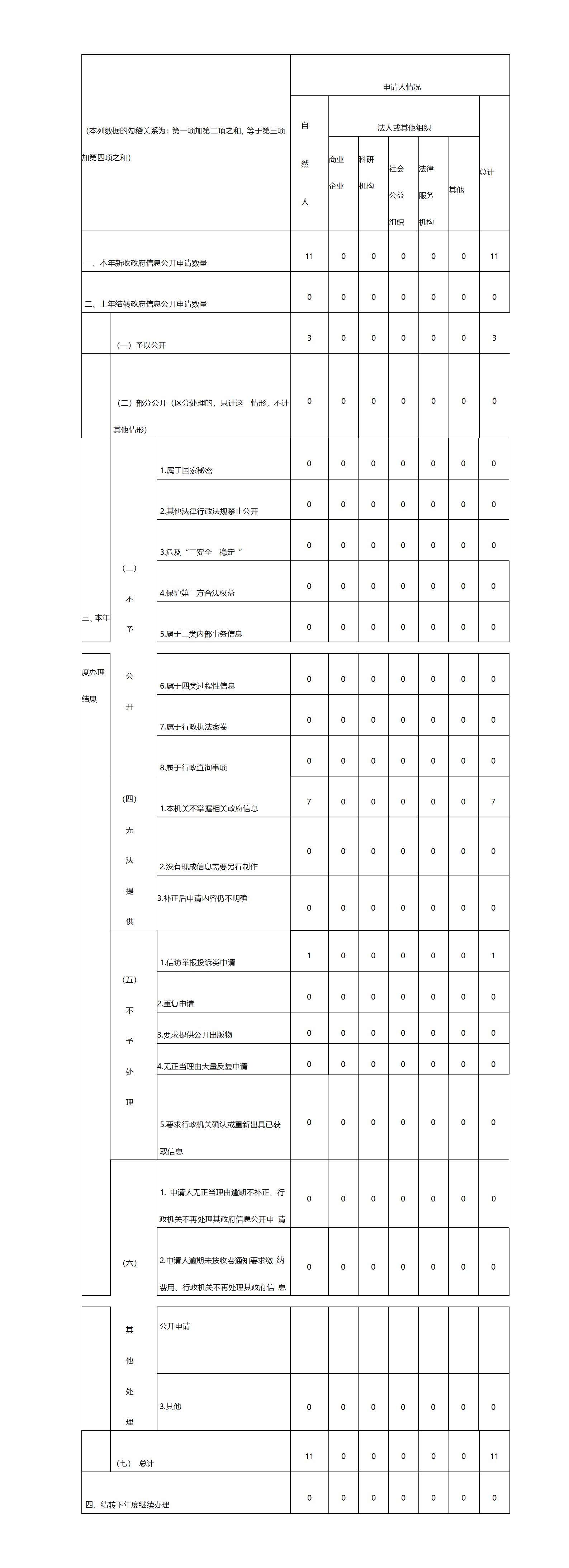 三、收到和处理政府信息公开申请情况