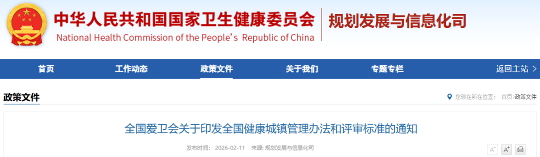全国爱卫会关于印发全国健康城镇管理办法和评审标准的通知