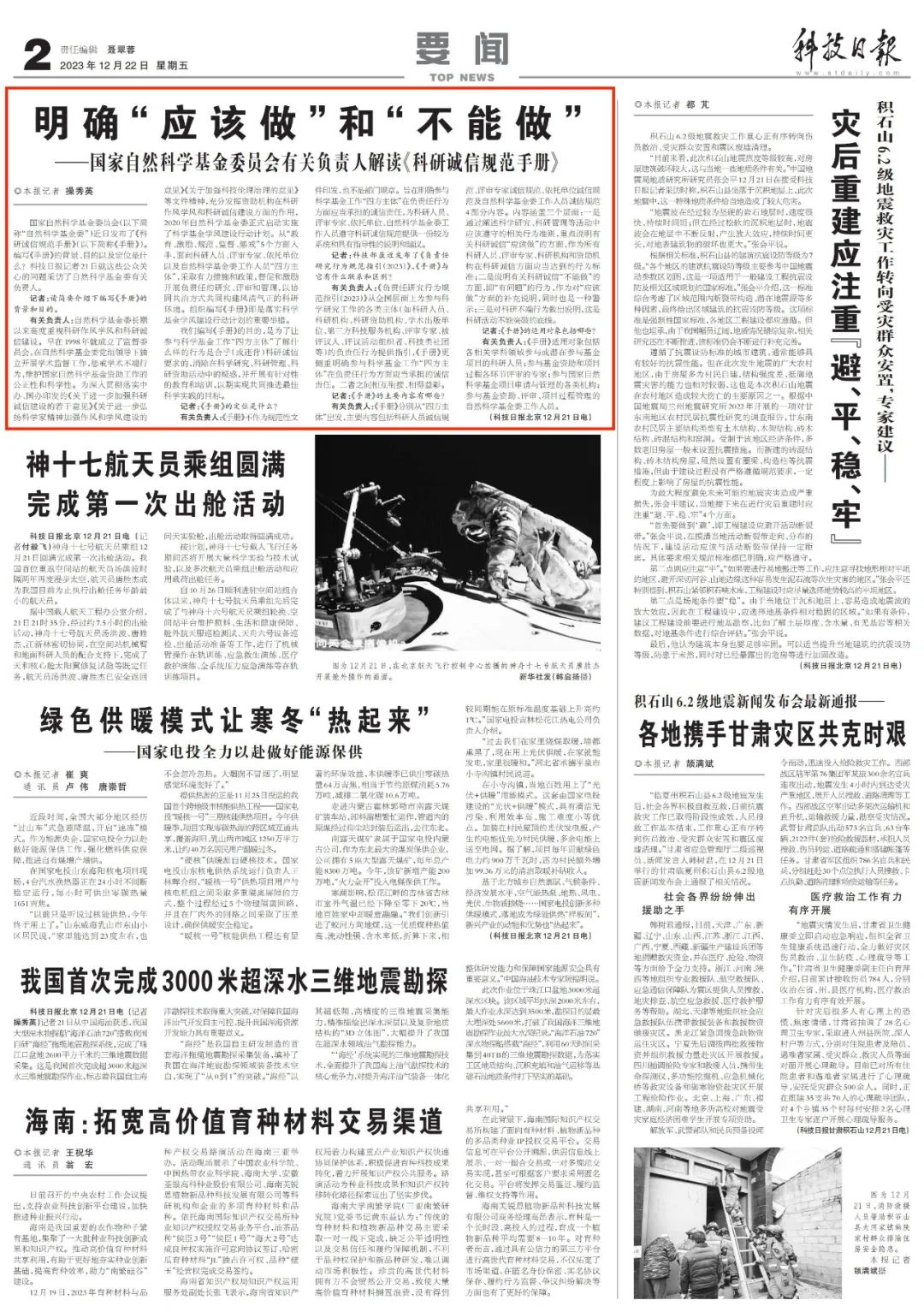 有关负责人:《负责任研究行为规范指引(2023)》从全国层面上为参与科学研究工作的各类主体(如科研人员、科研机构、科研资助机构、学术出版单位、第三方科技服务机构、评审专家、被评议人、评议活动组织者、科技类社团等)的负责任行为提供指引,《手册》更侧重明确参与科学基金工作“四方主体”在负责任行为方面应当承担的诚信责任。二者之间相互衔接、相得益彰。