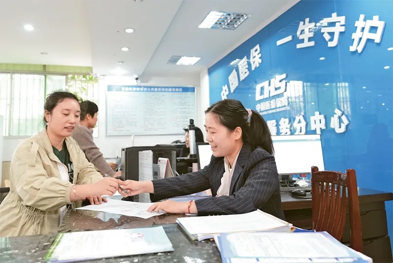 2023年10月初,重庆市北碚区医疗保障局联合相关镇街打造的5个医保政务服务分中心正式启用,主要经办医保关系转移接续、个人账户一次性支取、医保补缴等19项医保业务,为周边企业及群众提供更加优质、高效、便捷的医保公共服务。图为10月9日,市民在北碚区静观镇医保政务服务分中心办理医保相关事宜。 人民图片 秦廷富/摄